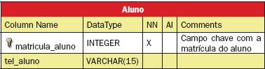 - Flags: são propriedades definidas para o campo, em função do tipo de dados selecionado, como UNSIGNED, ZEROFILL e BINARY;