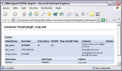 Depois de escolhidas as opções desejadas, pode-se salvar o script SQL em um arquivo texto, escolhendo a opção Save Script to file, ou apenas enviar este código para a área de transferência, utilizando a opção Copy Script to ClipBoard. A Listagem 1 apresenta um trecho do script SQL gerado pela ferramenta para a criação das tabelas Curso e Disciplina.