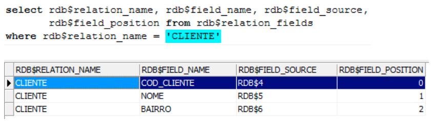 - RDB$FIELD_POSITION – Ordem dos campos na tabela