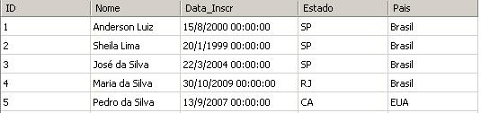 • SQL = select * from Inscricoes