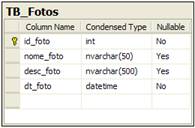 Nota: Não se esqueça de marcar o campo id_foto como IsIdentity. |