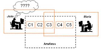 Neste cenário, o segundo desenvolvedor não notifica o primeiro desenvolvedor sobre o impacto que a modificação do artefato C3 pode causar no código. Consequentemente, o primeiro desenvolvedor, que está usando o mesmo espaço de trabalho, não conseguirá identificar, de forma rápida, o motivo que levou sua implementação a falhar. Este problema acontece pela falta de notificação e pelo compartilhamento de artefatos de software por diversos desenvolvedores.