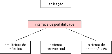 Cabe salientar que o ambiente no qual um sistema de software opera é normalmente composto de hardware, sistema operacional, sistema de entrada e saída (E/S), bem como a aplicação. Uma abordagem geral que poderia ser adotada para obter um sistema portável tentaria separar as partes do sistema que dependem do ambiente externo numa camada ou interface de portabilidade, conforme ilustrado na Figura 5.
