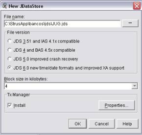 Para criar um novo banco de dados selecione o menu File->New. Na janela de opções, indique a versão do banco a ser criada, defina o diretório e dê um nome para o arquivo de dados. A extensão do banco será .jds. (Figura 2).