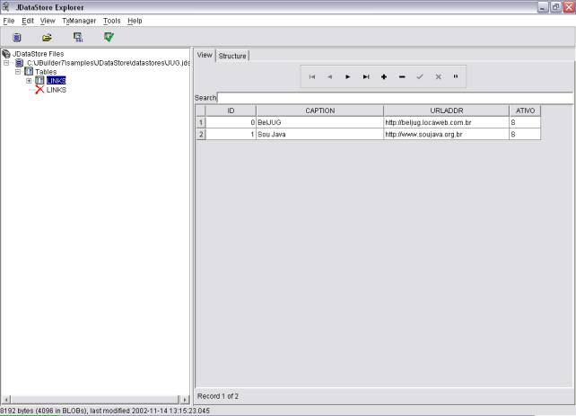 A instalação é simples e rápida, bem como a utilização dos seus recursos. O banco acompanha um utilitário para manutenção visual, chamado JDataStore Explorer (Figura 1).