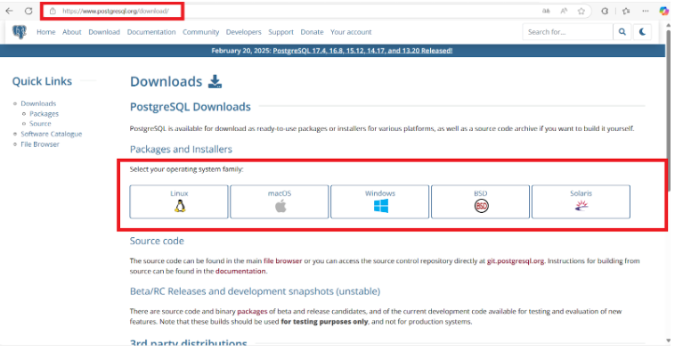 Download: Você pode baixar o PostgreSQL no link oficial