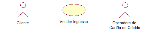 Na Figura 1, vemos um diagrama de caso de uso para venda de ingressos pela internet. Nele o cliente envia as informações do seu cartão de crédito para a compra do ingresso. O nosso sistema deverá enviar essas informações para o sistema da operadora do cartão de crédito afim de validação. Repare que o diagrama tem dois atores, um (Cliente) sendo um usuário do nosso sistema e o outro (Operadora de Cartão de Crédito) sendo o sistema externo que validará os dados do cartão de crédito do cliente. Note que, assim vamos obtendo a “fronteira do sistema” que é tudo que o ator enxerga e/ou percebe do sistema, ou seja, as informações passadas para o sistema pelo ator e as informações passadas para o ator pelo sistema. Quando a informação dada pelo ator atravessa a fronteira do sistema, ela está dentro do sistema e o ator não sabe como essa informação será tratada, só importando o resultado.