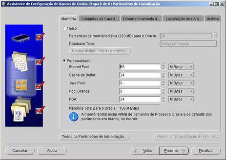 Na opção “Típico”, define-se apenas a porcentagem que o Oracle alocará em relação ao total de memória física disponível. A distribuição entre as várias áreas será definida pelo próprio Oracle.