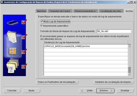 - Arquivo init.ora - Este é o arquivo de parâmetro de configuração (pfile) que o DBCA cria a partir dos valores configurados durante sua execução. Será utilizado na inicialização do BD e também como base para a criação do arquivo de configurações do servidor.