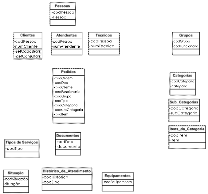 - Cliente, Atendente e Técnico = Pessoas