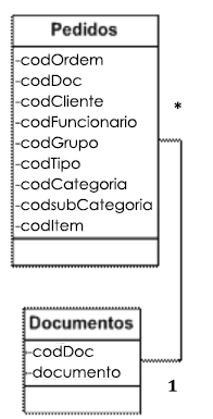 Sabemos também que esse pedido será repassado para um técnico que o atenderá, sendo assim um técnico pode atender a vários pedidos e um pedido pode ser atendido por um técnico, sendo representado por 1-N, lembrando que a classe que recebe o N herda o campo chave da outra classe como chave estrangeira, sendo assim ficará a tabela de pedidos com mais um campo chamado: código do técnico.