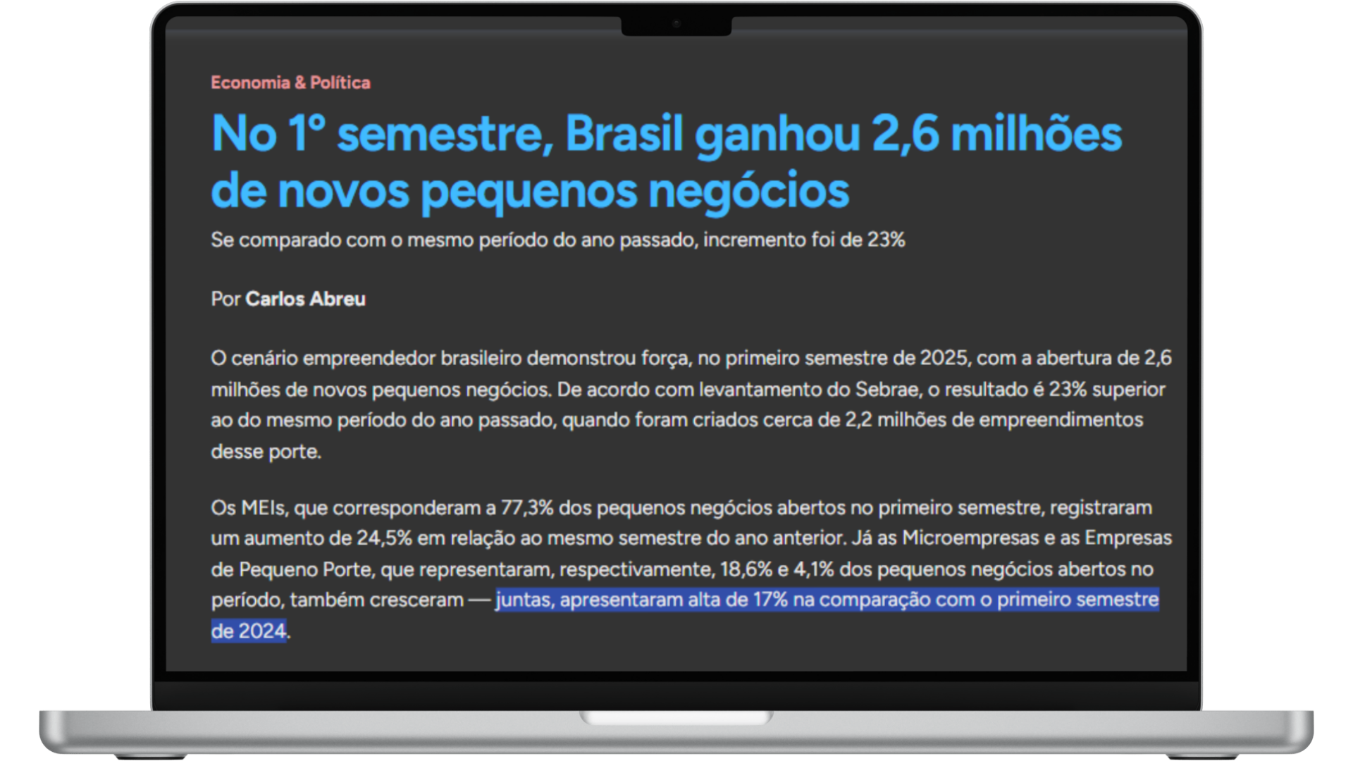 O Brasil tem 21 milhões de pequenos negócios ativos (fonte Sebrae).