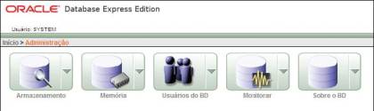 Área responsável por todo o gerenciamento da instância e banco de dados XE. A partir deste item podemos gerenciar memória, capacidade de armazenamento, usuários, realizar monitorações de sessões e encontrar informações de configuração do banco de dados. A Figura 3 mostra as opções internas.