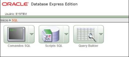O Apex incluiu uma versão do SQL*PLUS para acesso via web, semelhante ao iSQL*PLUS, que permite aos usuários acostumados aos comandos SQL ou PL/SQL executarem as instruções diretamente no banco de dados. Ainda existe a opção de criação e armazenamento de scripts (Opção Scripts SQL) e construção on-line de consultas (Opção Query Builder) como mostra a Figura 5.