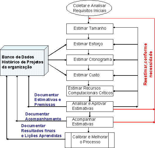 A Figura 1 ilustra um processo de Estimativas de Projetos de Software. Este processo é descrito nos parágrafos seguintes.