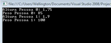 Console.WriteLine("Altura Pessoa: " + i + ": " + nomes[i].altura + "\nPeso Pessoa" + i + ": " + nomes[i].peso);