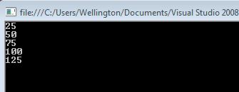 Note que os valores originais são 5, 10, 15, 20 e 25. Após o uso do método AlterarValor, veja o resultado:
