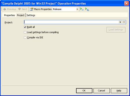 ineDrawn pixelLineWidth 0"> Figura 1. Janela principal do Automated Build Studio À esquerda estão as operações que podem ser automatizadas, agrupadas por suas categorias. O painel no meio mostra as operações para o projeto atual (Automated Build Studio chama o conjunto de operações para construir uma aplicação de Macro). À direita fica o assistente, um misto de dicas de ajuda e assistente para construir as operações. O assistente mostra links para os arquivos de ajuda, dicas de auxílio e mostra passos para concluir a operação desejada. Criaremos aqui uma pequena aplicação de teste em Delphi 2005 Win32 que mostra uma mensagem quando um botão é clicado: ShowMessage('Botão clicado'); No Automated Build Studio, selecione a opção de menu File>New para criar uma nova macro. No painel Operations selecione Borland Compilers e dê um duplo clique Figura 2. Propriedades da operação para compilação Delphi 2005 Clique no botão de reticências na caixa de edição do projeto e selecione o projeto a ser compilado. Clique no botão Load Settings para carregar as configurações atuais do projeto. Na guia Settings você pode alterar as configurações do projeto. A partir desse momento, o que é alterado aqui é independente do que foi configurado no Delphi. Uma alteração aqui não muda as configurações do Delphi e vice-versa. Na guia Properties preencha a descrição da operação (“Programa principal do projeto”) e um nome único para ela (“CompilaPrincipal”). Ao fechar a caixa de diálogo, a descrição é mostrada na frente da operação no painel Macro. Salve o projeto usando File>Save As, dando o nome de “TestMacro.bbp”. Execute a macro com F5. O projeto deve ser compilado e a guia Log and Summary deve ser mostrada, como na Figura 3. Figura 3. Guia Log and Summary Na parte superior da janela é mostrado um sumário da execução atual e da última execução com sucesso, de maneira a poder compará-las. Abaixo do sumário, são mostradas as operações da macro e seu resultado. Quando você seleciona uma operação, as mensagens desta são mostradas no log, na parte inferior da janela. Adicionando novas operações Um projeto simples como esse não vale um projeto de compilação. É muito mais fácil compilá-lo no IDE. Adicionaremos novas operações a ele, sendo que o clique do botão executará uma função numa DLL. Crie uma nova DLL no Delphi, com o código da Listagem 1. Listagem 1. Criando uma DLL no Delphi library Testdll; uses Windows; ...