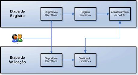or objetivo familiarizar o usuário com os conceitos básicos que envolvem esse tipo de integração, fornecendo ao leitor uma visão ampla sobre o tema, suas características, desafios e principais problemas. Para a leitura e entendimento deste artigo não se faz necessário um vasto conhecimento a respeito do processo de integração de dispositivos biométricos, uma vez que a API para implementação de tal integração é vastamente documentada pelo fabricante e acompanha diversos aplicativos de demonstração. Biometria - Conceitos Gerais Biometria é o conjunto de métodos automatizados para reconhecer uma pessoa com base em características comportamentais ou fisiológicas. São exemplos de características comportamentais: Escrita manual, assinatura, gestos. São exemplos de características físicas: Face, impressões digitais, geometria da mão, íris. Este artigo é focado no que diz respeito à autenticação biométrica utilizando a característica física da impressão digital. A autenticação de um usuário pode ser feita através de informações que o usuário conhece como senhas ou através de dispositivos que o usuário possua como cartões magnéticos, códigos de barras ou chaves. O que acontece é que em todos os casos citados, os dispositivos de autenticação podem ser perdidos ou roubados. A biometria vem para tentar solucionar esse problema, pois, ao contrário das outras técnicas, ela se baseia no que você é, ou seja, em informações contidas em seu corpo ou com base no seu comportamento, dificultando e muito o processo de fraude. Tipicamente o processo de uso de tecnologias biométricas passa por duas etapas bem definidas, o Registro e a Validação, conforme mostrado na Figura 1. Figura 1. Etapas de Registro e Verificação dos processos biométricos Durante o processo de registro, ocorre: · a captura dos parâmetros biométricos, utilizando-se para tanto o dispositivo de captura adequado; · a extração das características biométricas para a geração do padrão biométrico dos dados lidos; · o armazenamento do padrão biométrico gerado em uma estrutura de banco de dados para consulta posterior. Durante o processo de validação, ocorre: ...