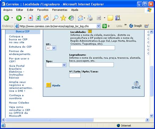 Figura 1. Opções de busca de CEP disponíveis no site dos Correios