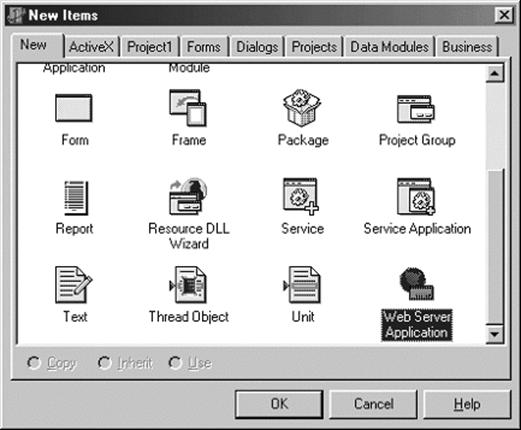 Selecione a opção File/New do Delphi e na janela seguinte (Figura 1) selecione a opção Web Server Application. Clique no botão OK para confirmar.