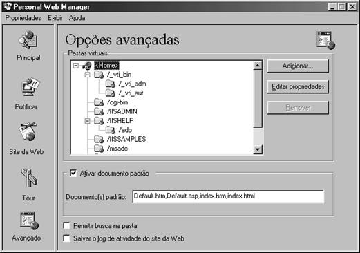 Em seguida, devemos configurar o Personal Web Server para reconhecer este diretório. Abra o gerenciador do PWS: