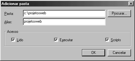 Repare que a opção executar está marcada, permitindo os scripts localizados neste diretório serem executados.