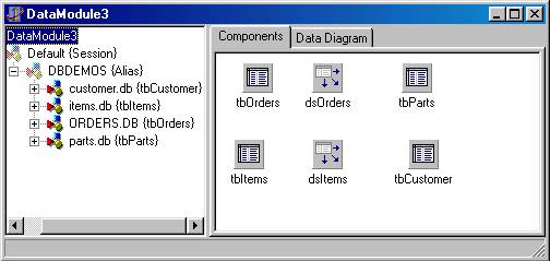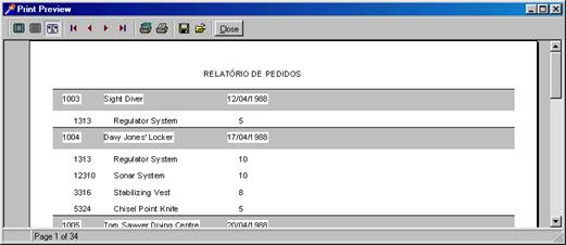 O relatório criado é um simples master/detail, envolvendo as tabelas ORDERS.DB e ITEMS.DB, o equivalente à pedidos e items. Crie um objeto DataModule e um objeto QuickReport, através do Object Repository, e configure-os conforme a listagem abaixo: