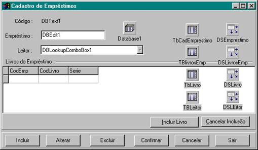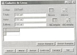 Repare também que há dois botões abaixo da DBGrid. Estes botões irão, respectivamente, incluir e cancelar inclusão de livros .