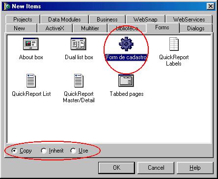 Vamos agora iniciar a programação – entre no Delphi e abra o nosso projeto, chamado Biblio. Crie um novo formulário, e chame-o de cadatro de empréstimos. Para isto, usaremos o nosso modelo de form de cadastro, criado na edição anterior. O modelo já possui muito do trabalho pronto, e isto é um grande ponto positivo. Clique no menu File, opção New, para chamar o Object Repository.