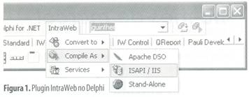 Como vimos na edição 33, podemos migrar uma aplicação intraweb feita no modelo application mode entre stand-alone, isapi ou apache. Para isso precisamos alterar o código fonte do arquivo dpr. Você pode usar um plugin que fiz para a ide do delphi (veja a Figura 1), com opções que facilitam a conversão de sua aplicação intraweb para outro tipo.