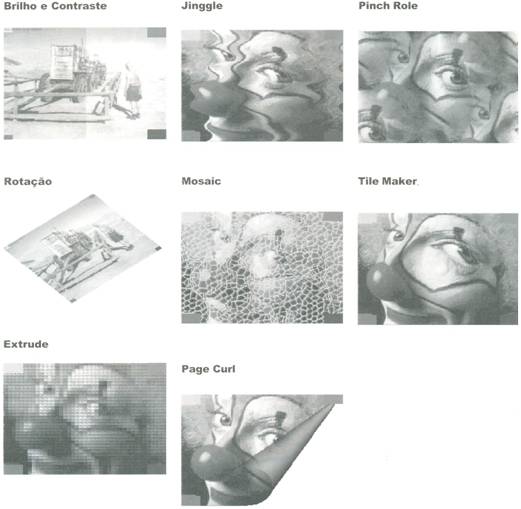 Muitas outras facilidades podem se encontradas ao utilizar esta biblioteca, tais como recurso de gravação de figuras em banco de dados, opção de configuração da paleta, etc. Outro recurso bastante interessante são os efeitos que podem ser disponibilizados em nosso programa para o usuário. Confira alguns destes efeitos: