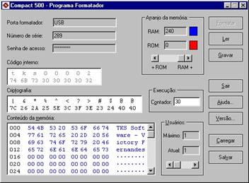 No caso do kit de proteção da Proteq (que inclui, além da chave, softwares e documentação), o acesso à chave de hardware é feito usando um software chamado “Formatador”. O Formatador, dentre outras funcionalidades, permite a configuração e o acesso à memória da chave (veja a Figura 1).