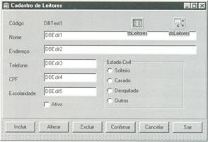 Abra o formulário de leitores e insira um objeto TTable. Configure suas propriedades de acordo com a tabela abaixo: