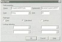 A janela Add New Field, que já foi utilizada para criarmos campos do tipo LookUp, também permite a criação de campos virtuais. Configure os dados de acordo com a tabela abaixo: