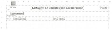 Insira um objeto TQRDBText, dentro do objeto TQRGroup, para identificar os grupos. Altere sua propriedade DataSet para tbLeitor, e a propriedade DataField para Escolaridade.