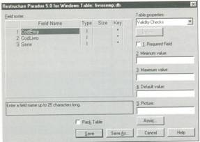 Agora devemos garantir sua integridade não permitindo a exclusão de leitores que já tenham algum empréstimo efetuado. Para isto, primeiramente, deveremos criar um novo índice na tabela de empréstimos. Abra então o Database Desktop, clique no menu Tools | Utilities | Restructure, e em seguida selecione a tabela de empréstimos para que a estrutura da tabela seja exibida, conforme mostra a figura 1.