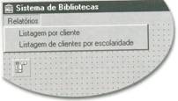 Iniciaremos com nosso relatório mais simples, porém, necessário: a listagem de leitores. Para iniciarmos, crie uma opção de menu no formulário principal, e chame-a de Relatórios. Abaixo, crie uma opção chamada Listagem de Clientes, que atenderá esta primeira situação.