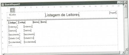 Link o relatório com a tabela, definindo a propriedade DataSet do objeto TQuickRep para tbLeitor.