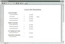 Chegamos ao final de nosso tema. Para facilitar o estudo, os fontes se encontraram disponíveis no endereço: www.clubedelphi.com.br/jornal/biblio.zip. Neste exemplo vimos os recursos básicos e indispensáveis para a construção de um sistema. Trabalhar com Table, Query, objetos DataControl, eventos, e o QuickReport são elementos que provavelmente não faltarão em qualquer sistema de controle. Os eventos do QuickReport e a parte programada são muito extensas, e serão matéria de próximas edições. Para quem ficou com alguma dúvida, crítica, ou queira acrescentar algum comentário, basta enviar um e-mail para suporte@clubedelphi.com.br. Espero que tenha sido claro em minhas considerações e que este pequeno sistema possa ter ajudado no aprendizado da linguagem. Agradeço a atenção dada por todos vocês e estou ansioso para nosso próximo encontro. Até a próxima!