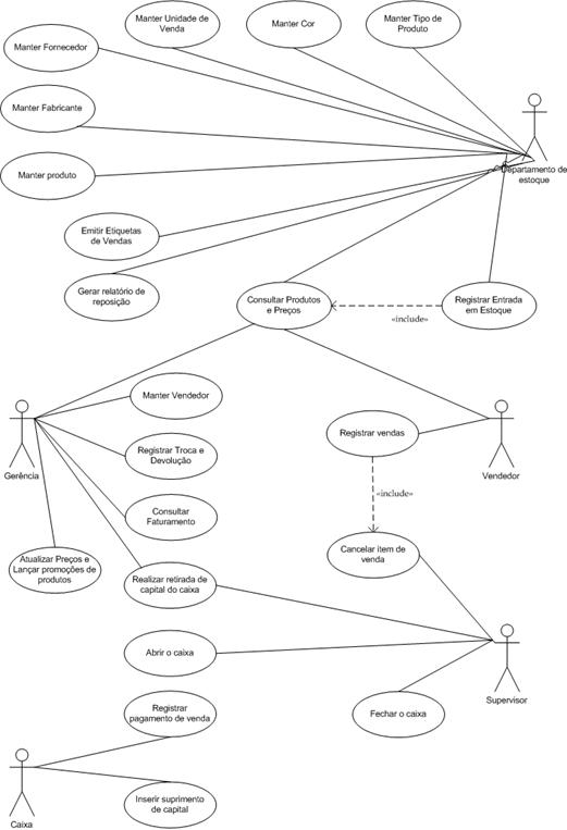 O caso de uso Manter Produto nos apresenta a idéia do caso de uso de manutenção, com as funcionalidades de inclusão, alteração, exclusão (se for o caso) e consulta. O entendimento desse formato leva, por similaridade, à escrita de outros casos de uso: Manter Fabricante, Manter Tipo de Produto, Manter Fornecedor, Manter Unidade de Venda ...