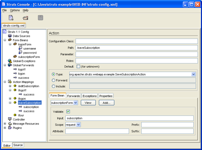 Você está aprendendo a usar Struts e ainda não está preparado para enfrentar um IDE completo como o Eclipse, NetBeans, ou JBuilder; mas também não quer editar os arquivos de configuração do Struts manualmente? Então uma boa opção é o Struts Console (jamesholmes.com/struts/console). Esta aplicação puro-Java permite editar visualmente arquivos como o struts-config.xml e o validation.xml (para o Struts 1.0, 1.1 e 1.2, sendo que esta última ainda em desenvolvimento); é suportada também a criação de tag libraries. E se você depois decidir usar IDEs completas, há plug-ins para Eclipse, JBuilder, JDeveloper, NetBeans, IDEA e outras ferramentas.