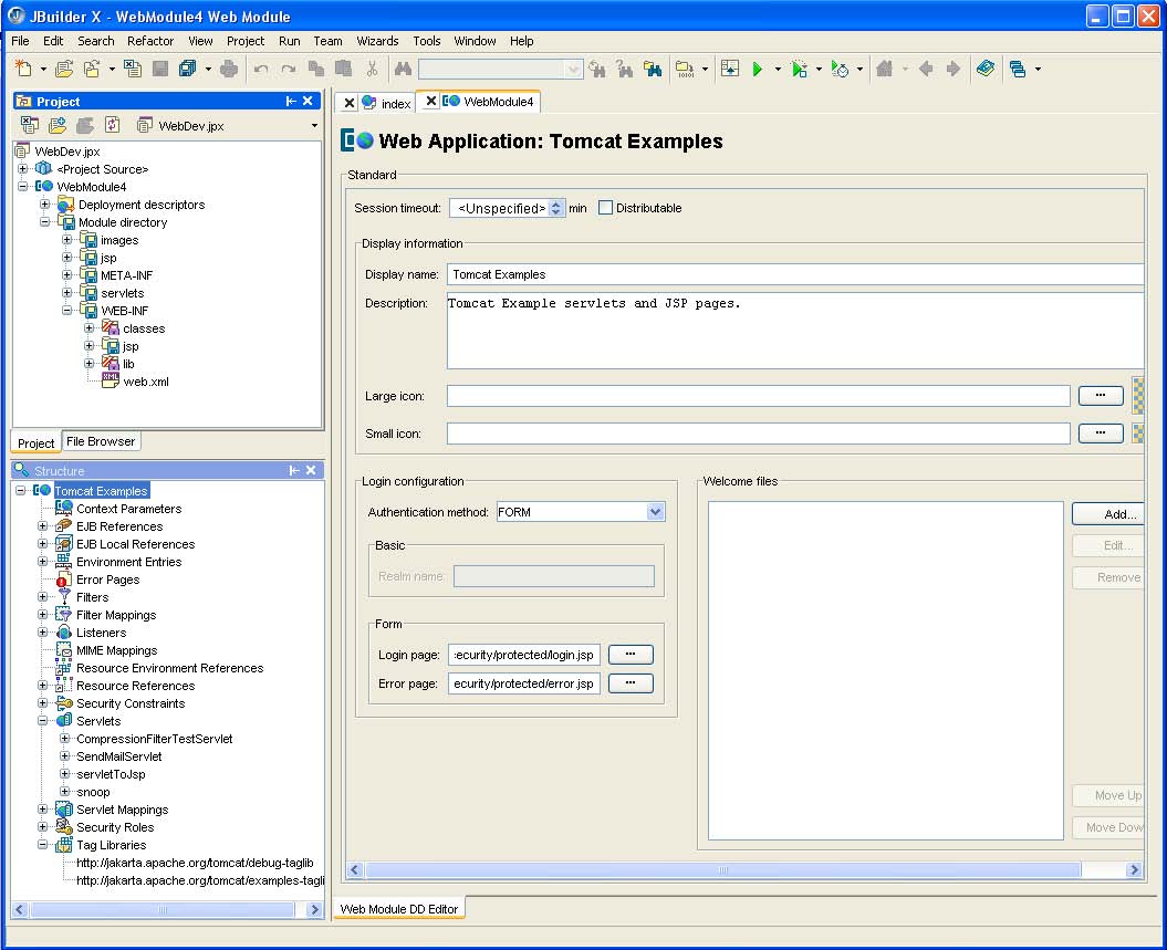 JBuilder oferece um editor visual para o descritor web.xml, que permite