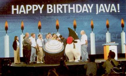 Dez anos de Java: celebração oficial com os criadores originais da tecnologia, executivos da Sun, bolo e bandinha
