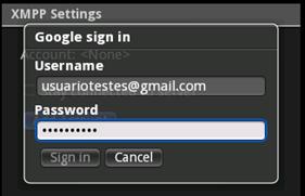 Antes de usar o XMPP, é necessário configurar o usuário do serviço (no caso, o Google Talk).