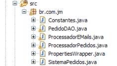 Vamos considerar que o sistema que está em produção é composto pelas classes apresentadas na Figura 1. Podemos perceber pelo menos duas características que não estão de acordo com as boas práticas de programação: as classes não estão devidamente separadas em pacotes, e os fontes apresentam “avisos” (warnings) indicando que existem possíveis falhas no código.