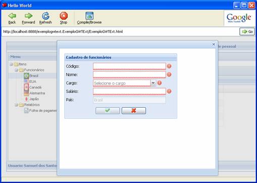=MsoNormal style="MARGIN: 0cm 0cm 0pt; TEXT-ALIGN: left; mso-margin-top-alt: auto; mso-margin-bottom-alt: auto" align=left>Para o desenvolvimento de aplicações web com interfaces ricas e interativas é necessária a utilização de uma diversidade de tecnologias, como JavaScript, DHTML Ajax, etc. dificultando assim a vida do desenvolvedor, que precisa conhecer várias linguagens, trabalhar com as diferentes sintaxes e limitações de cada uma delas. O GWT-Ext permite a criação de interfaces ricas e interativas utilizando apenas a linguagem Java, propondo uma maior produtividade e oferecendo um conjunto amplo de componentes sofisticados advindos do ExtJS e a facilidade da programação para a geração desses componentes advindos do GWT. Conhecendo o GWT-Ext: A biblioteca GWT-Ext consiste na integração das tecnologias GWT e ExtJS, proporcionando uma poderosa biblioteca de widgets que provê ricos componentes de interface, tais como: grids com ordenação, paginação e filtro; árvores com suporte a drag and drop; comboboxes altamente customizáveis; tab panels; menus; tollbars; forms; entre outros. O GWT consiste em um conjunto de ferramentas open source que permitem aos desenvolvedores criarem aplicações Ajax na linguagem Java. O ExtJS, por sua vez, é uma biblioteca de JavaScripts para a criação de componentes de interface web com alta interatividade. GWT apenas, não oferece um conjunto de componentes tão amigáveis quanto os oferecidos pelo ExtJS, enquanto este necessita que o desenvolvedor conheça outra linguagem além do Java para a construção de aplicações. O GWT-Ext surge como um meio de se criar componentes tão ricos como os apresentados pelo ExtJS usando apenas linguagem Java como proposto pelo GWT. O desenvolvimento de aplicações web sempre teve como vantagem principal a independência do cliente para a interação com o sistema. Máquinas clientes com os mais diversos tipos de configurações são beneficiadas pelo processamento no servidor, servindo apenas como ponto de interação com o usuário final das aplicações. À medida que esse tipo de desenvolvimento foi se difundindo e novas tecnologias foram surgindo, usuários e desenvolvedores passaram a ficar mais exigentes e seletivos no desejo de criar interfaces mais ricas. Porém, não era possível construir tais interfaces utilizando apenas a linguagem de programação empregada no sistema, ou seja, era necessário uma linguagem para desenvolvimento e outras para criação de layout, como JavaScript, HTML, DHTML, Flash, etc. O surgimento do Ajax (Asynchronous JavaScript And XML) permitiu a criação de páginas mais interativas com o usuário, utilizando-se de solicitações assíncronas de informações e iniciando assim uma nova geração de aplicações web. A partir daí novas bibliotecas surgiram para melhorar a interatividade do usuário utilizando Ajax. Uma delas é o ExtJS, uma biblioteca JavaScript open source para construção de aplicações web ricas com interfaces gráficas sofisticadas e com alto grau de interatividade com o usuário. O ExtJS é detalhado no artigo: Introdução ao Framework ExtJS (Edição 60). Outra solução foi o GWT (Google Web Toolkit), um conjunto de ferramentas open source que permitem aos desenvolvedores criarem aplicações Ajax na linguagem Java. O compilador GWT traduz código Java para um JavaScript equivalente, que manipula programaticamente o HTML no web browser usando técnicas de DHTML. O GWT trouxe uma grande facilidade para os desenvolvedores Java que normalmente brigavam com o JavaScript para desenvolver interfaces ricas no lado cliente. Outras vantagens de usar a linguagem Java pelo GWT é que ele proporciona um código melhor estruturado, além de facilitar o desenvolvimento RPC cliente-servidor para Java, e ainda elimina a necessidade de bibliotecas como DWR (Direct Web Remoting) para construir pontes entre o serviço Java e os clientes JavaScript. Como desvantagem, o GWT não possui um conjunto de componentes sofisticados como o ExtJS. Para saber mais sobre GWT leia o artigo: Ajax avançado com GWT (Edição 39). Em junho de 2007, Sanjiv Jivan propôs no seu blog a integração do GWT e ExtJS. Seu objetivo é permitir que desenvolvedores Java possam criar interfaces web ricas como as do ExtJS usando apenas a linguagem Java, como proposto pelo GWT. Dessa forma, foi criada a biblioteca GWT-Ext, uma poderosa biblioteca de widgets que provê ricos componentes de interface, tais como grids com ordenação, paginação e filtro, árvores com suporte a drag and drop, comboboxes altamente customizáveis, tab panels, menus, tollbars, forms e muitos outros componentes poderosos com uma API muito fácil de usar. Além disso, é possível construir portlets facilmente, fazer integração com mapas (utilizando o google maps) e ainda a integração com gráficos (utilizando o google charts). A versão mais atual do GWT-Ext é a 2.0.5, lançada em setembro de 2008. Ela utiliza o ExtJS na versão 2.0.2 e o GWT na versão 1.5.2. A Figura 1 ilustra a diversidade de componentes oferecidos pela biblioteca apresentados no ShowCase Demo da biblioteca. Figura 1. Vários tipos de widgets disponíveis para o GWT-Ext. Desenvolvendo uma aplicação Para ilustrar o uso da biblioteca GWT-Ext apresentaremos um exemplo que consiste em um sistema de controle de pessoal para uma empresa multinacional. Iremos ilustrar o módulo de cadastro de funcionários através das operações CRUD. A idéia é mostrar o potencial da biblioteca através da utilização dos seguintes componentes: Além da utilização dos componentes visuais propriamente ditos, apresentaremos também alguns recursos adicionais da biblioteca, como: preenchimento automático de formulário a partir de um registro selecionado no grid e validação de campos do formulário no cliente. Nossa proposta principal é demonstrar os componentes visuais da biblioteca. Com isso, toda implementação de acesso ao serviço r