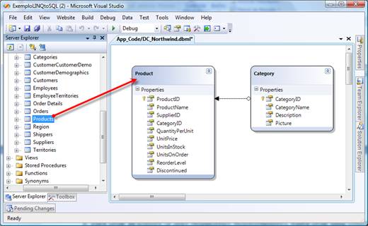 Veja que essa é uma forma bastante simples e ágil de se mapear as tabelas de um database em classes de um modelo de objetos. Apenas para ilustrarmos a diferença que esse modelo tem com relação ao antigo ADO.NET 2.0, veja na Listagem 3 como seria feita uma consulta na tabela de produtos da forma convencional. E na Listagem 4, veja como a mesma consulta é feita com o LINQ to SQL.