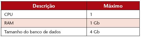 O hardware que será utilizado como servidor do banco de dados deverá ter pelo menos os requisitos apresentados na Tabela 2.