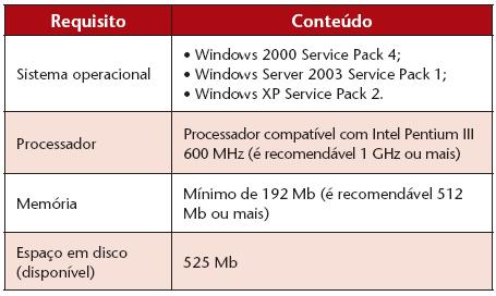 atualizar o utilitário Windows Installer para a versão 3.0. Outro programa que deve estar previamente instalado é o Microsoft .NET Framework 2.0. Caso algum destes aplicativos não estejam instalados na máquina ou estejam com uma versão inferior é possível fazer a atualização a partir do site da Microsoft.